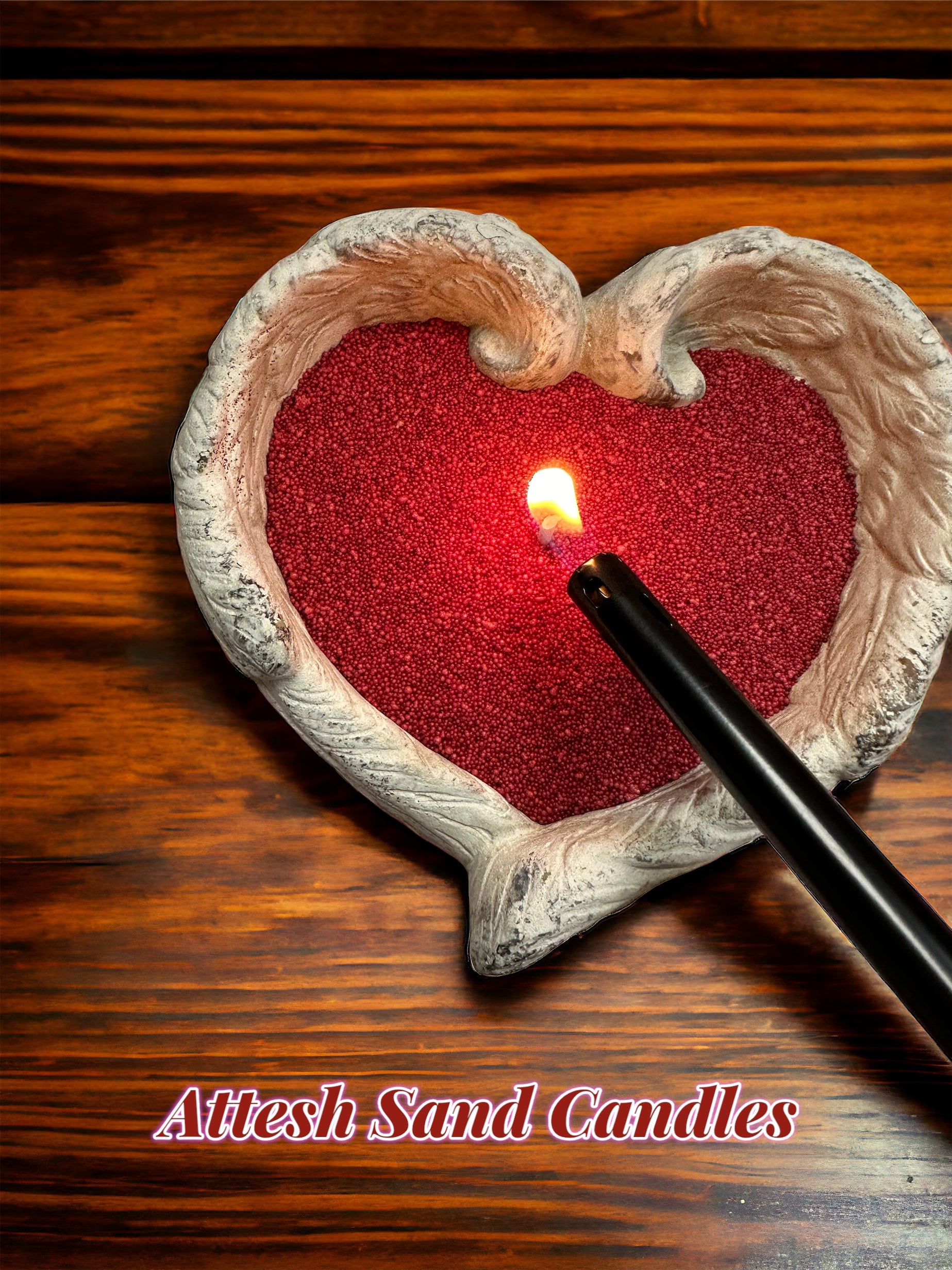 Safety: Attesh Sand candles are safer than traditional candles when used correctly. Maintain a safe distance from the container edge and bottom, ensuring at least 2 inches of sand around the wick. This allows the flame to self-extinguish if left burning or accidentally tipped over. Always follow good fire safety practices. Our sand is plant-based and non-toxic but not edible, so avoid ingestion and contact with eyes.