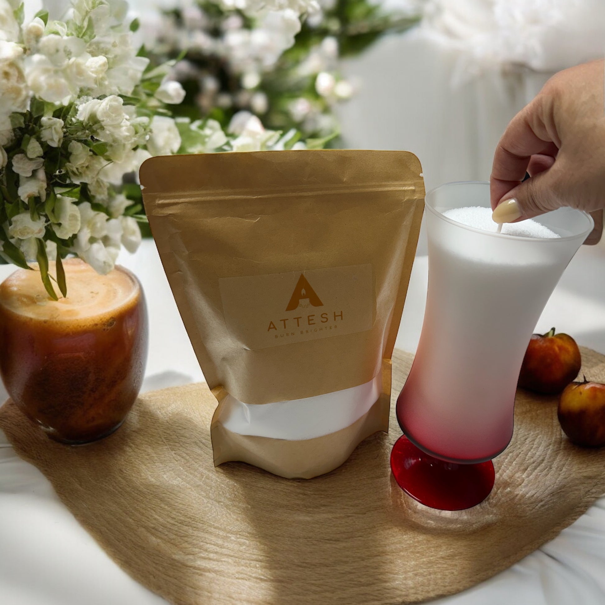 Attesh Sand Candle 24 oz: Illuminate your world with the warm glow and soothing fragrance of our Attesh Sand Candle. Crafted with meticulous attention to detail, this 24-ounce candle exudes serenity and sophistication. Let the gentle flicker of the flame create moments of pure bliss and relaxation.