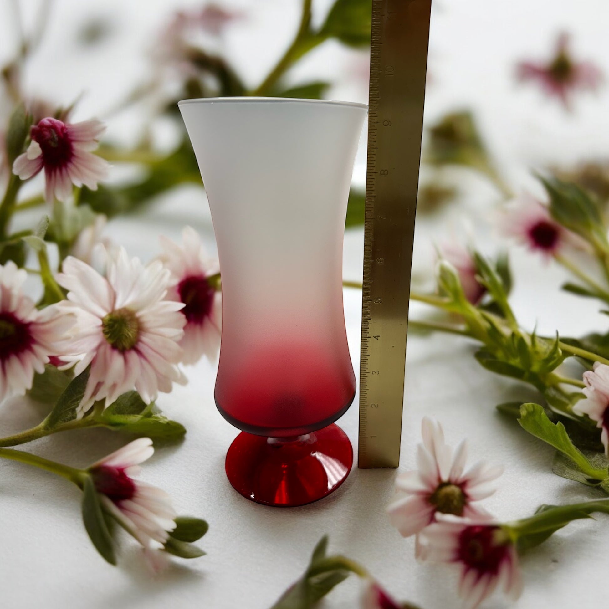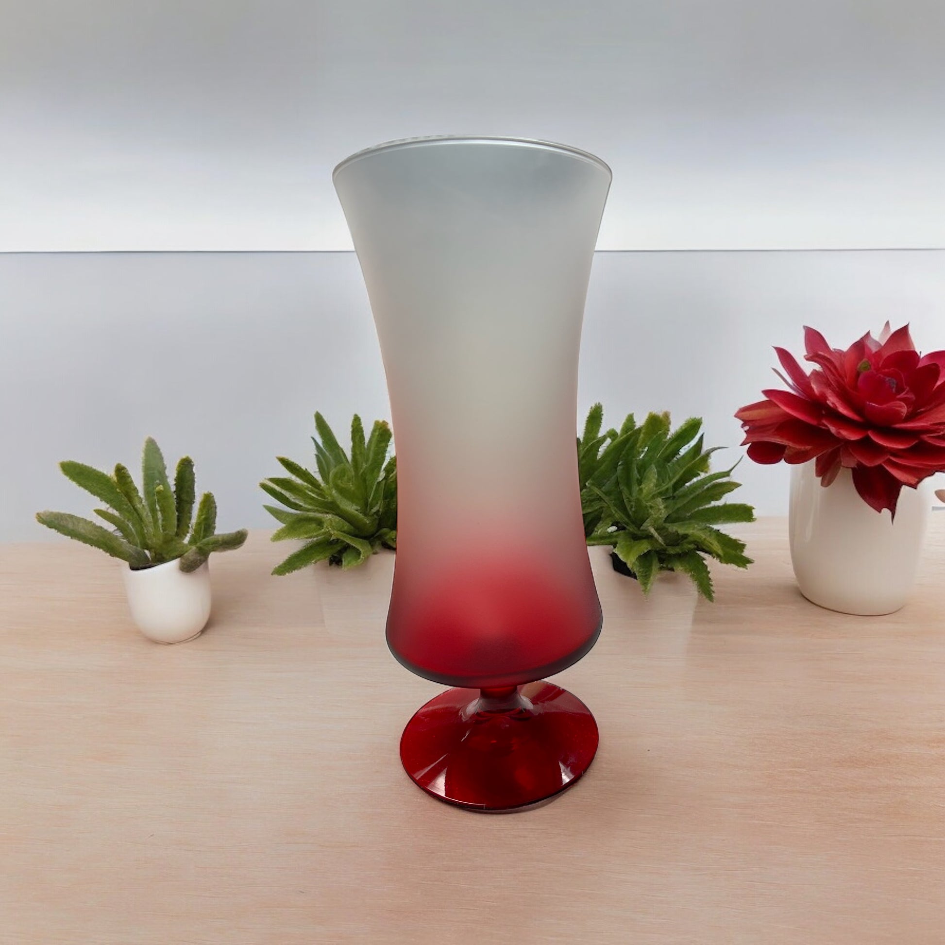 9 3/4 Footed Frosted Ruby Vase: Elevate her home decor with the timeless beauty of the Charlotte Vase. Standing tall at 9 3/4 inches, this exquisite vase boasts a graceful taper and a refined footed base, exuding an aura of sophistication and grace. The frosted ruby hue adds a touch of opulence and charm, making it a stunning centerpiece for any room. Whether adorned with fresh blooms or left to shine on its own, the Charlotte Vase is sure to leave a lasting impression.