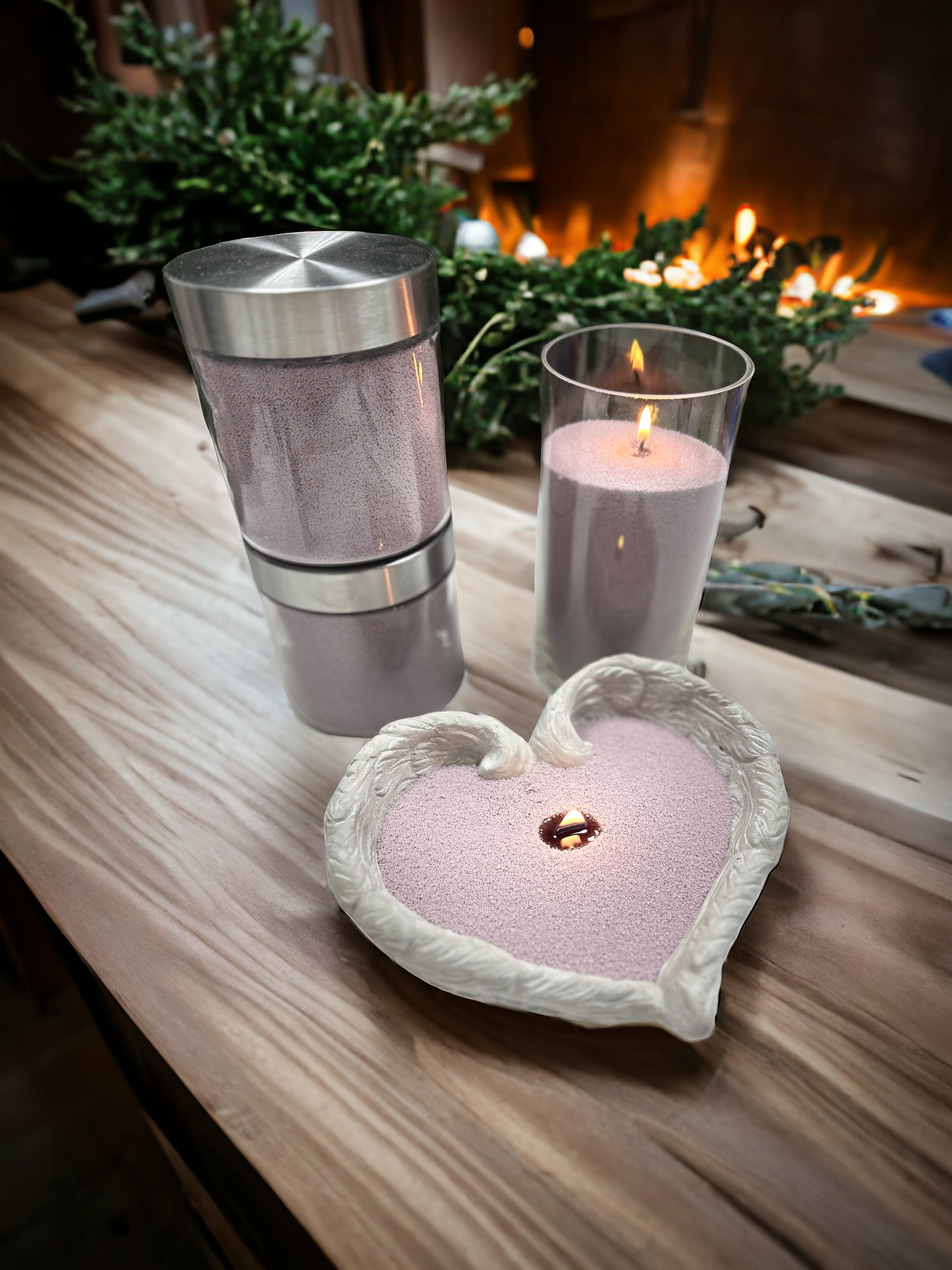 Safety: Attesh Sand candles are safer than traditional candles when used correctly. Maintain a safe distance from the container edge and bottom, ensuring at least 2 inches of sand around the wick. This allows the flame to self-extinguish if left burning or accidentally tipped over. Always follow good fire safety practices. Our sand is plant-based and non-toxic but not edible, so avoid ingestion and contact with eyes.