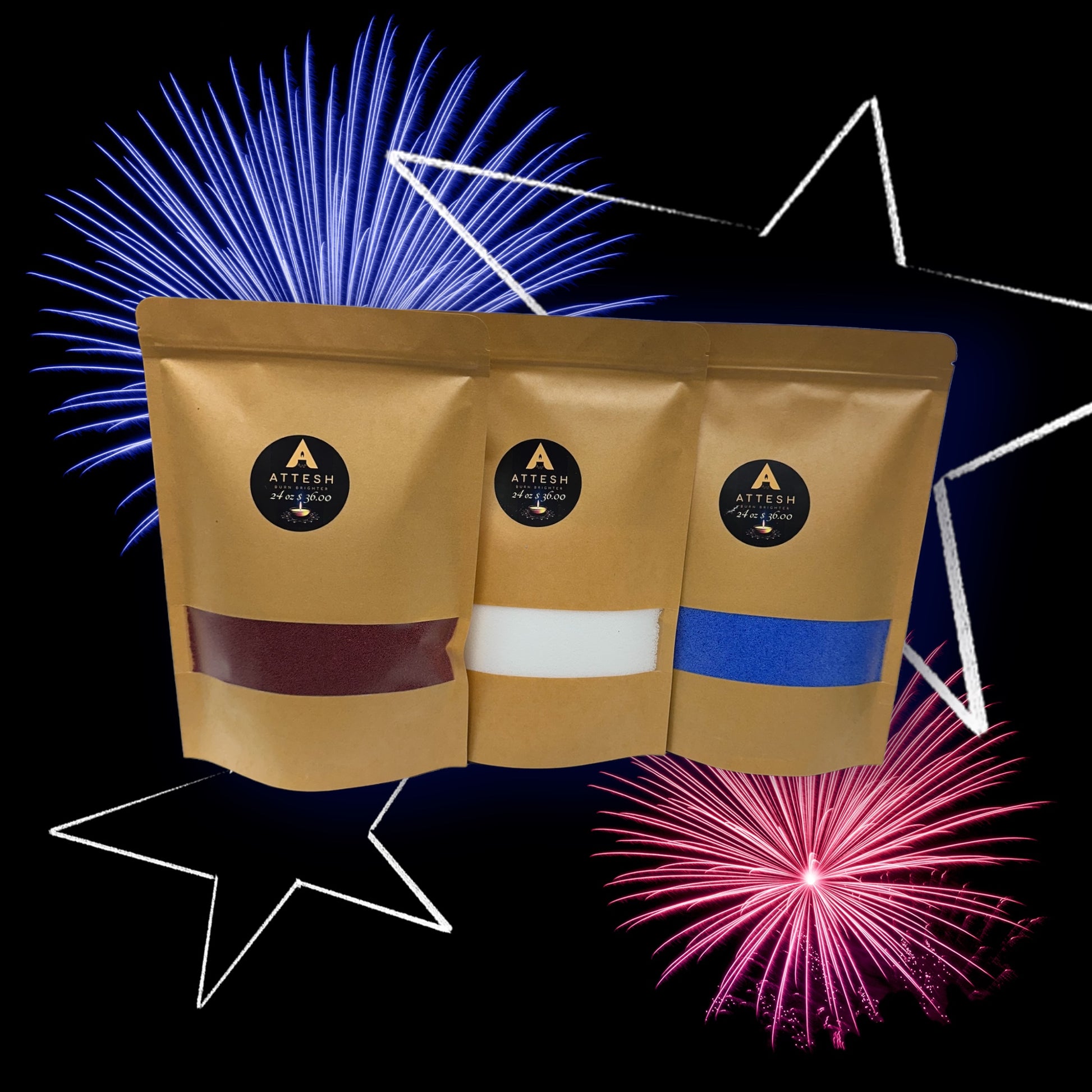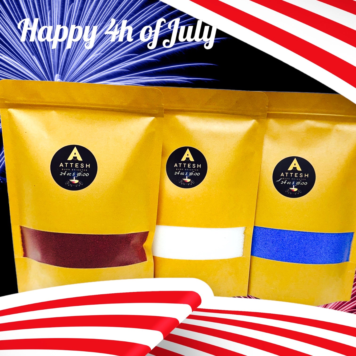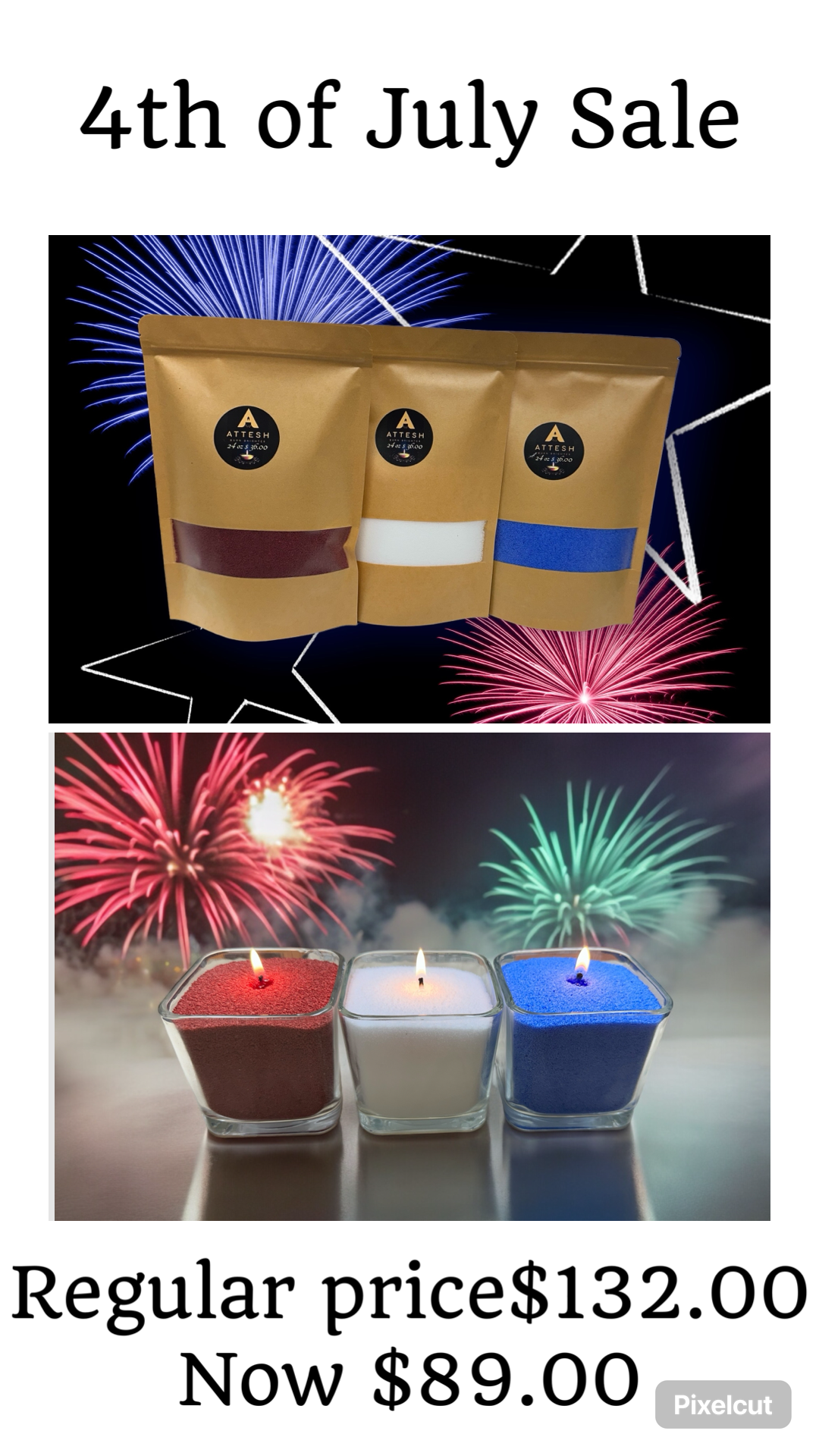 Celebrate Independence Day with our exclusive 4th of July Sale on Attesh Sand Candles! Embrace the patriotic spirit with our specially curated sets, featuring three packages of 24 ounces each in vibrant red, crisp white, and bold blue.